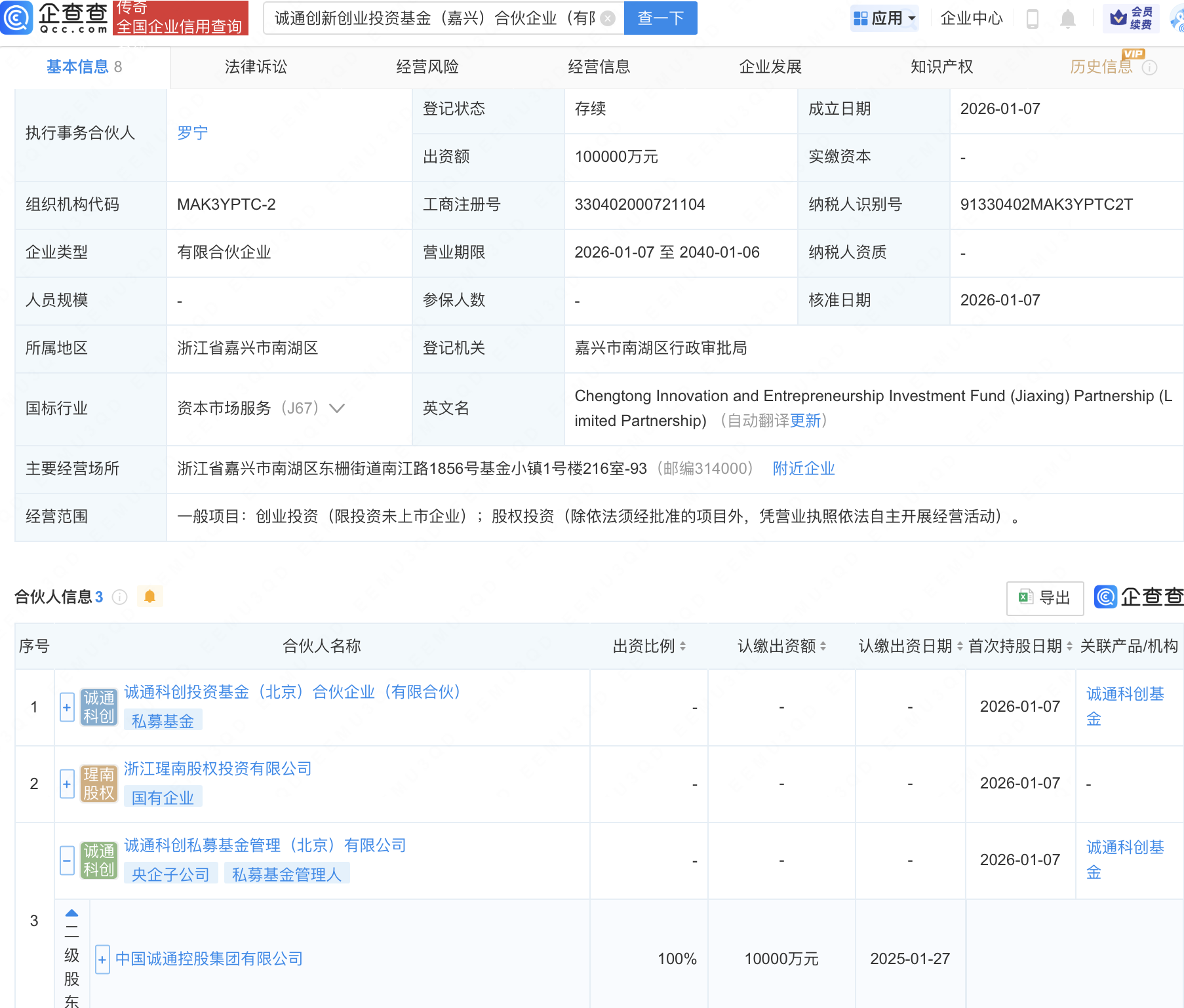 近日配资实盘网,诚通创新创业投资基金(嘉兴)合伙企业(有限合伙)成立,出资额10亿元,经营范围包含:创业投资(限投资未上市企业);股权投资。企查查股权穿透显示,该企业由中国诚通控股集团有限公司全资子公司诚通科创私募基金管理(北京)有限公司等共同出资。